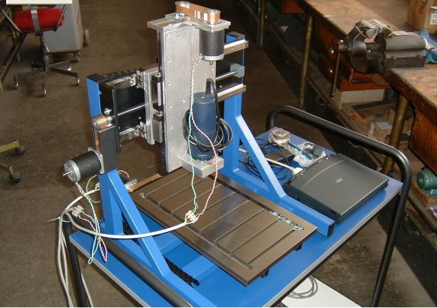 www.fotos.web.de/elmarwalter | Hobby | Flachbettfräsmaschine in geschweisster Ausführung. Verfahrweg : X 280mm Y 280mm Z 180mm Geschwindigkeit: max. 20mm/s ( 1200mm/min) Bearbeite Holz, Aluminium und mit neuer Spindel auch Stahl. Mehr Info´s bei elmarwalter@web.de. | ||