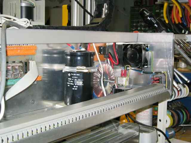 Bei Aufbau folgt man der ausführlichen Anleitung NC-Step, die beim Kauf der Karte mitgeliefert wird. Die Versorgungsspannung läßt sich über einen Halogenlampentrafo und einen Gleichrichter recht leicht bereitstellen. Auch diese Schaltung beschreibt Herr Ostermann genau in seiner Anleitung. Bei schwachen Stromnetzen im Hobbykeller empfiehlt er alternativ das Universalnetzteil, mit dem der Einschaltstrom bergrenzt werden kann und die Sicherungen geschont werden.