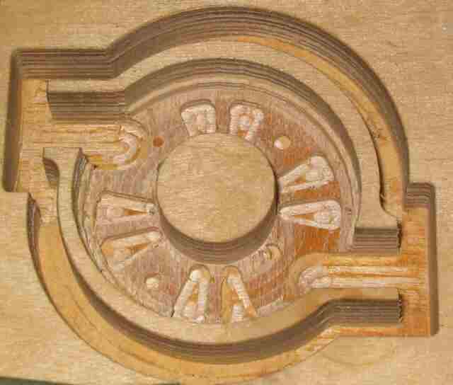 Und sowas kommt z.B. dabei heraus. Hier ein Motorflansch für den Brushless Motor als Muster in Holz gefräst.